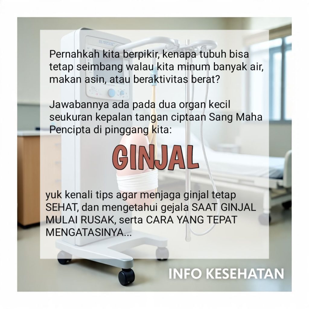 Pernahkah kita berpikir, kenapa tubuh bisa tetap seimbang walau kita minum banyak air, makan asin, atau beraktivitas berat?Jawabannya ada pada dua organ kecil seukuran kepalan tangan ciptaan Sang Maha Pencipta di pinggang kita: GINJAL